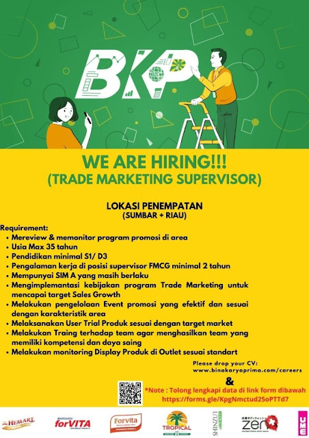 Lowongan Kerja Trade Marketing Supervisor PT Bina Karya Prima Sumbar - Riau November 2021